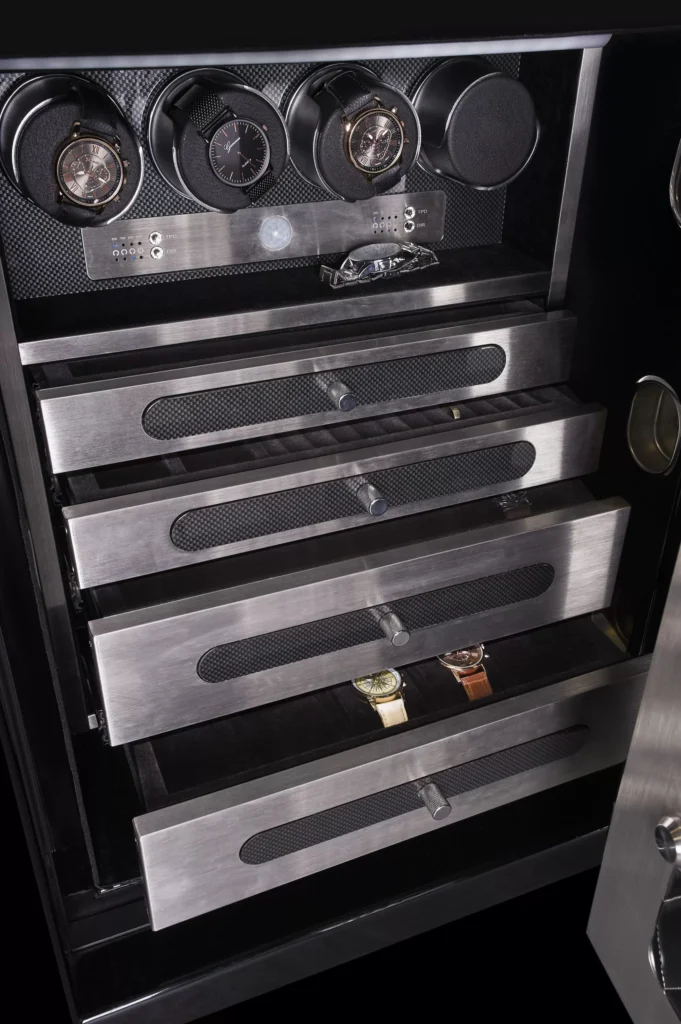 Choose any paint colour from an internationally recognised database and decide which finish the paint is applied in. Or you can opt for a custom made safe with a luxury leather bonded exterior in a range of patterns.